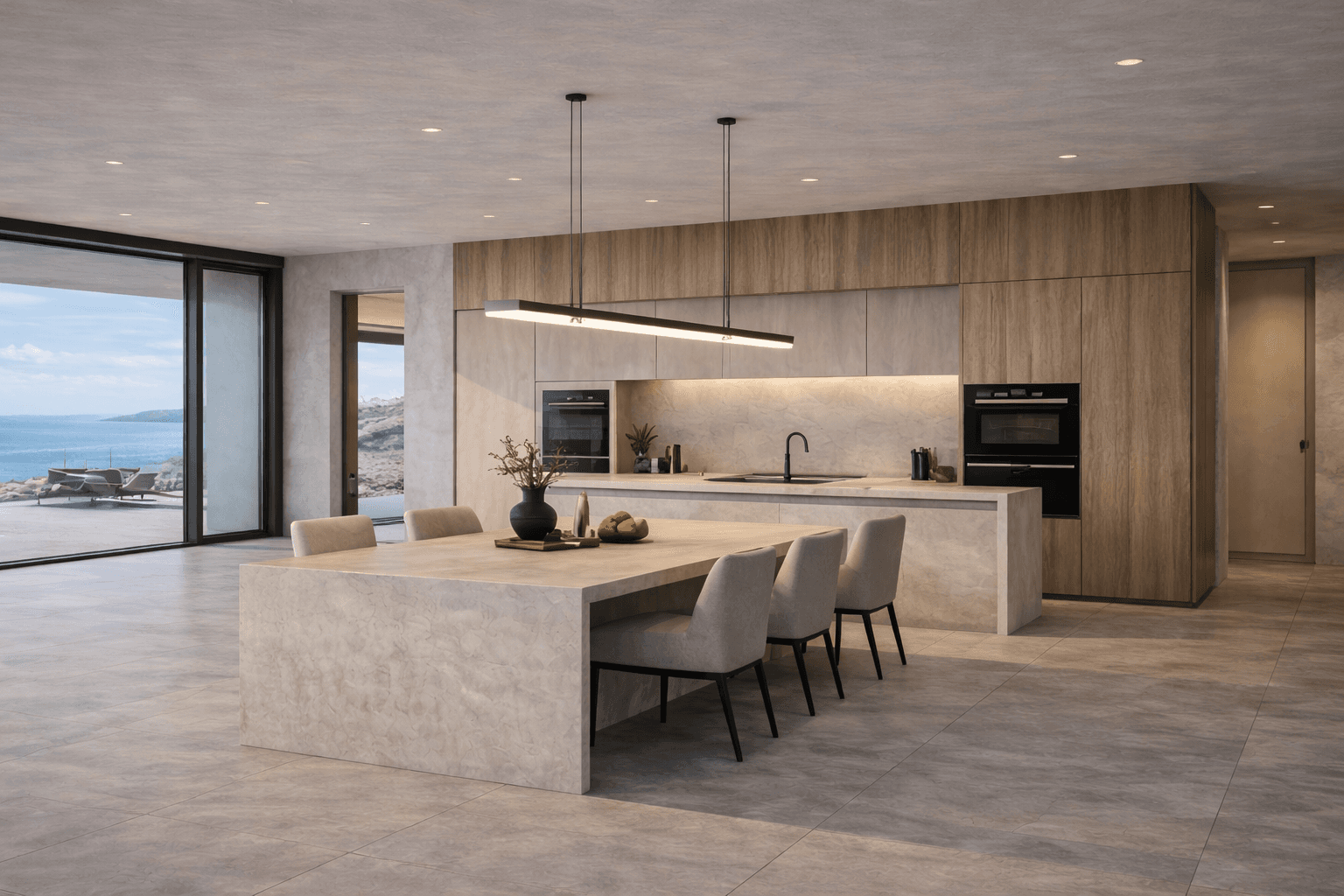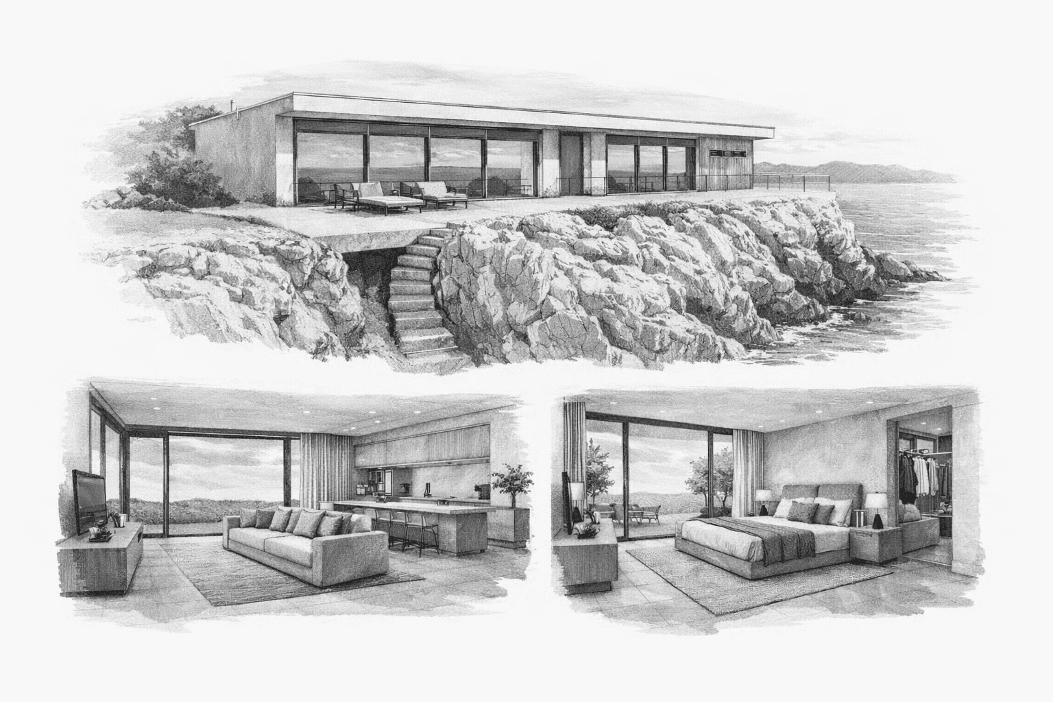 Une réalisation contemporaine où l’élégance minimaliste rencontre la force du site, entre falaises rocheuses et panorama maritime.